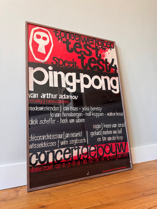 Original Vintage Wim Strijbosch Poster - Ping-Pong - Concertgebouw - 1959