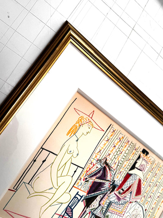 Framed Original Pablo Picasso Lithograph - Model & King, 1954