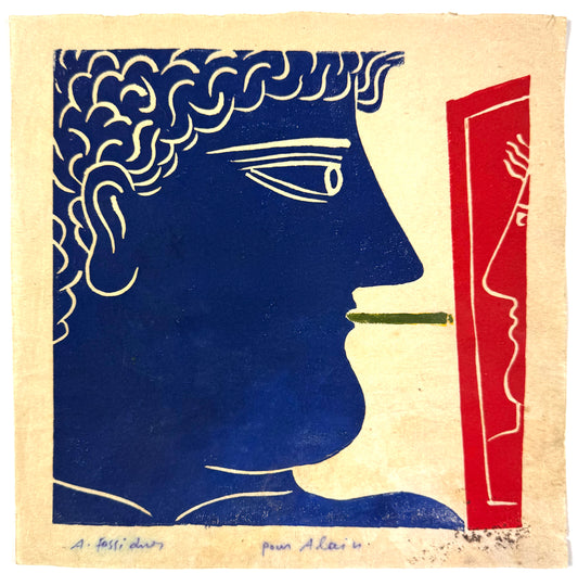 Framed Original Alekos Fassianos Linocut - The Smoker, 1969