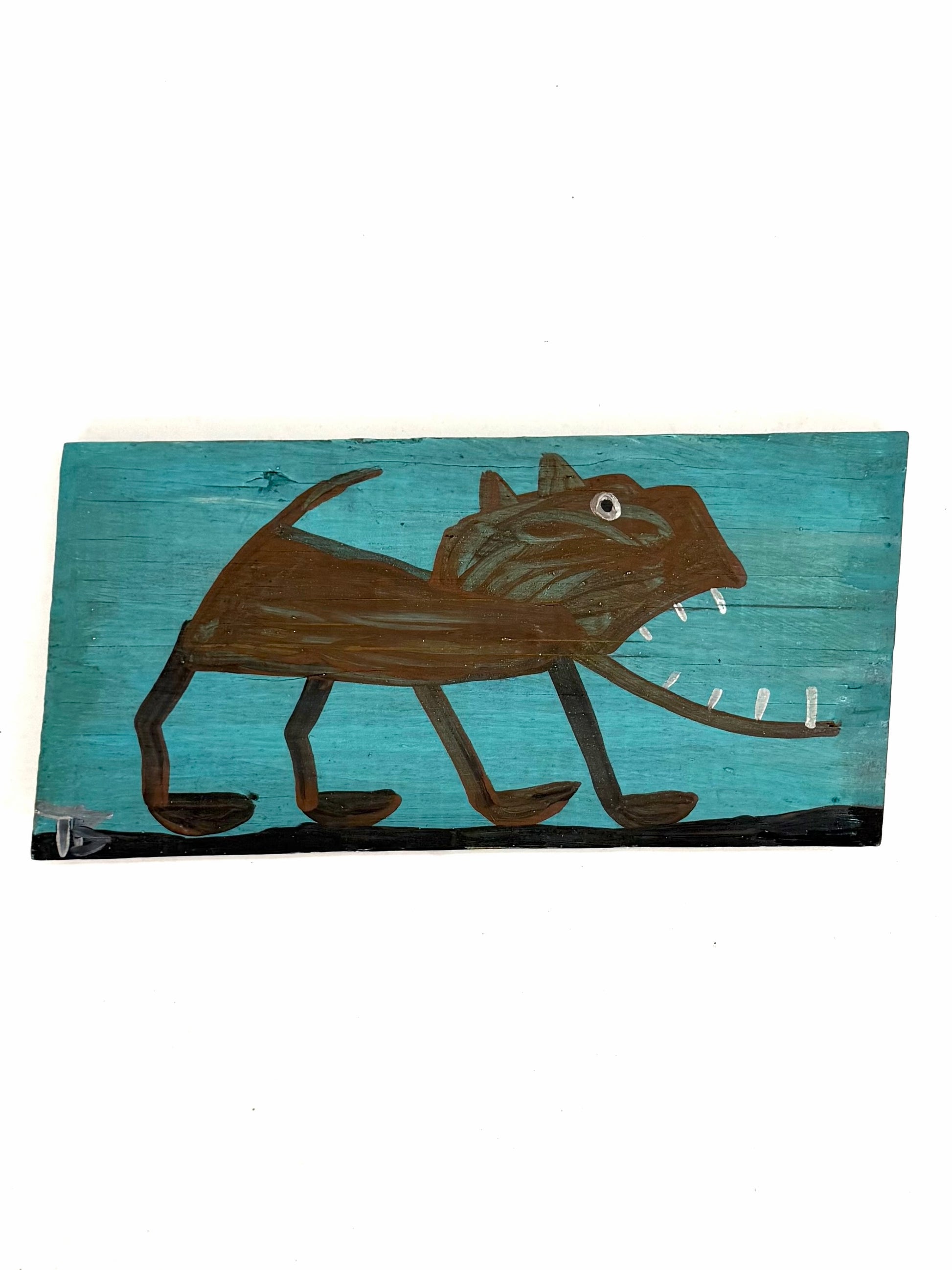 A painting on wood by Tim Brown, capturing memories of childhood, family, and everyday life in his farm community in Mississippi. Raw, intuitive, and deeply culturally expressive, painted directly on wood with vibrant, honest color.